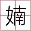 婻字解析: 婻这个字在命名时可以代表伉俪之情、美好的爱情、幸福美满、守护和谐家庭、意志坚强、美丽多彩等美好寓意,希望自己或家人的生活充满爱和幸福、充满希望和拼搏。